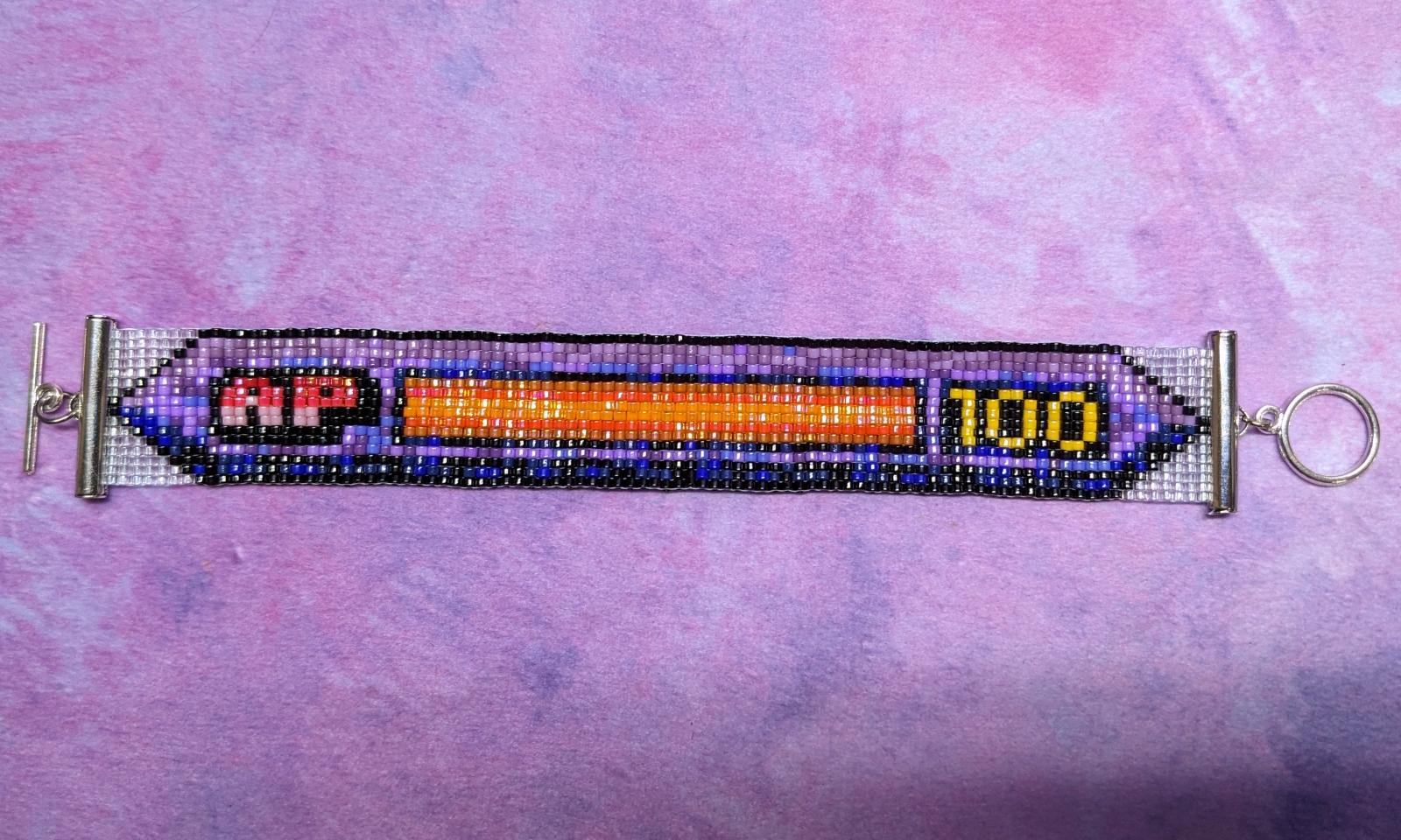 Design based on the AP Bar from Legend of Legaia, circa 1998/99. Background is clear beads to give the illusion that the bar is floating.