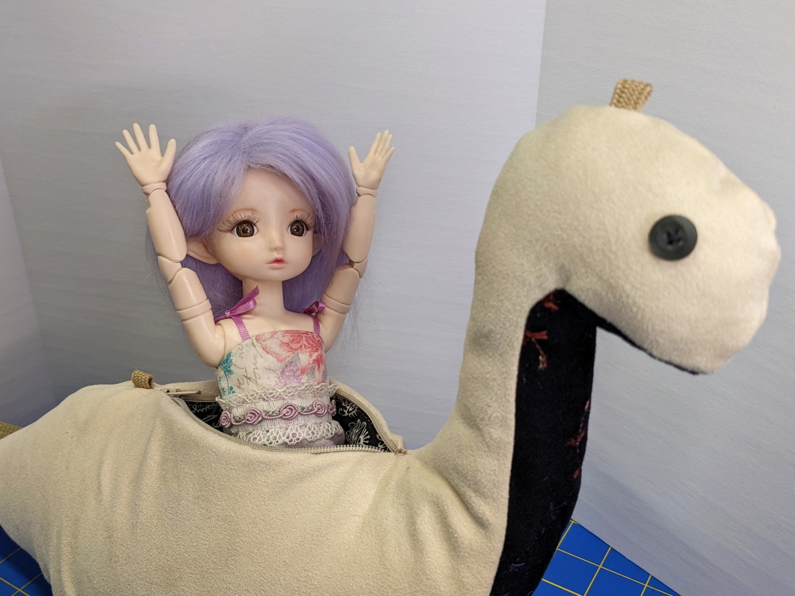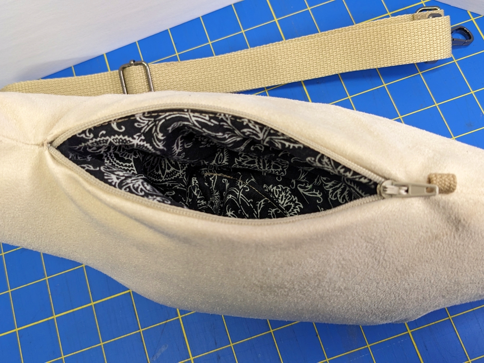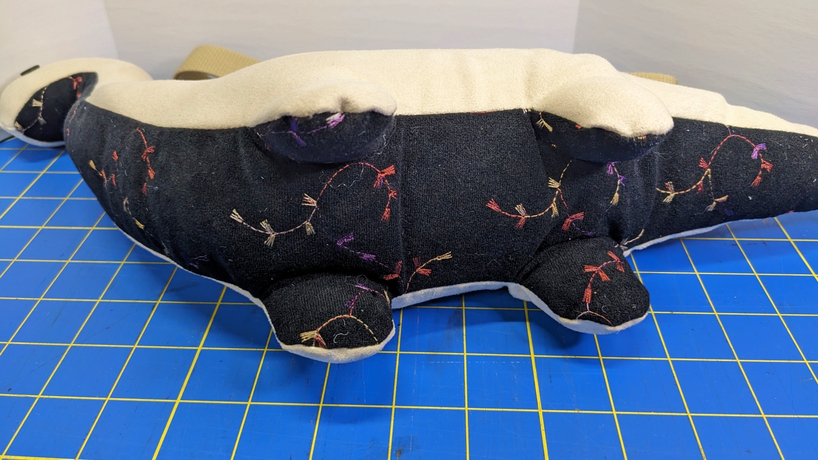 One of a kind cream colored bronto with a black embroidered belly. I cannot find this (black) material anymore, so once this design is gone, it's Gone!