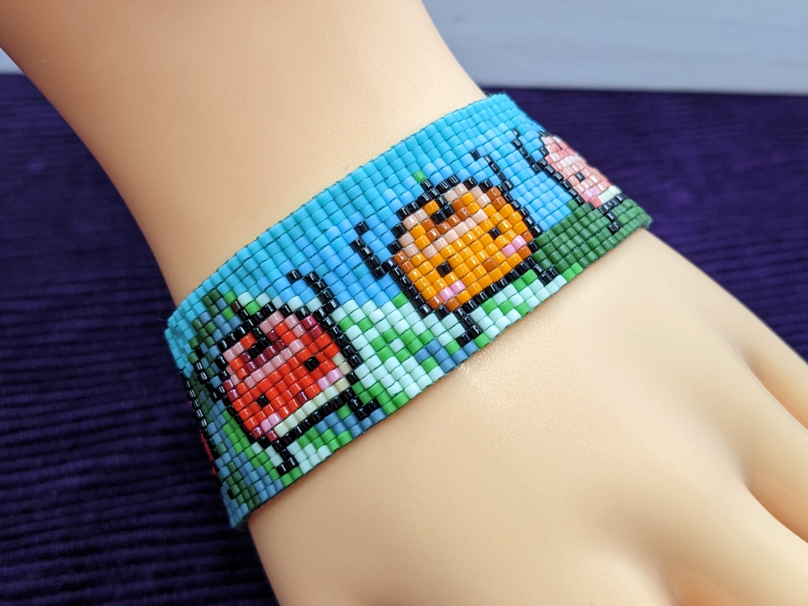 Handmade, one of a kind, no two are exactly alike! Made from Miyuki Delica seed beads, thread. Made using a bead loom, each bracelet takes anywhere from 2.5 to 4 hours to create.