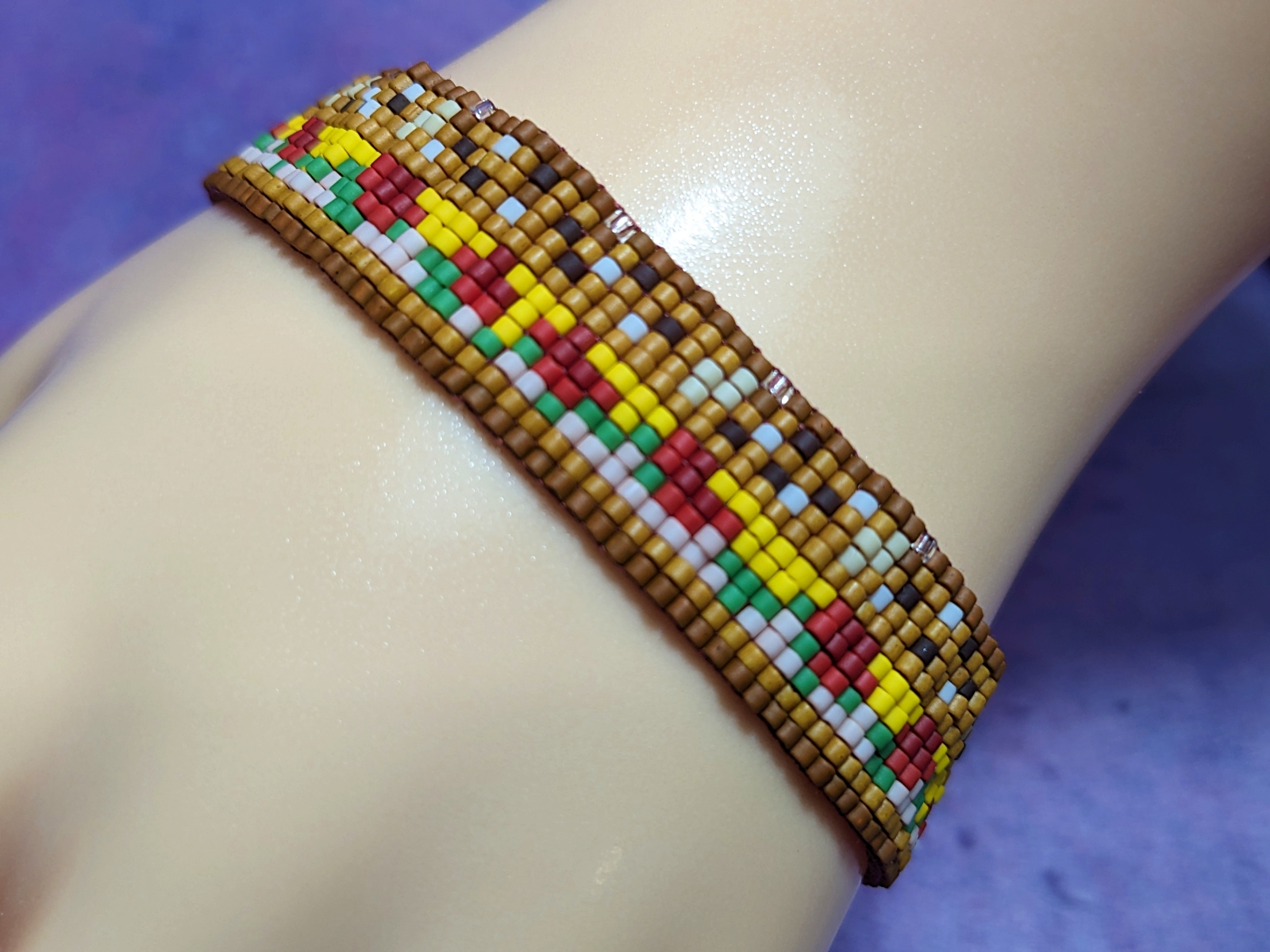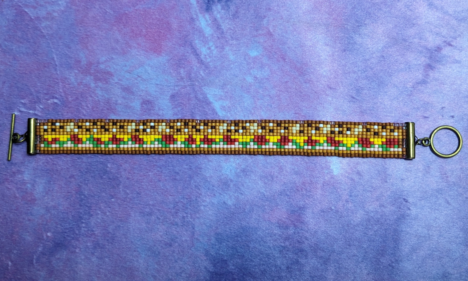 Bead loom bracelet design resembling a really really long sub sandwich. Any relation to recent political events is purely coincidental.