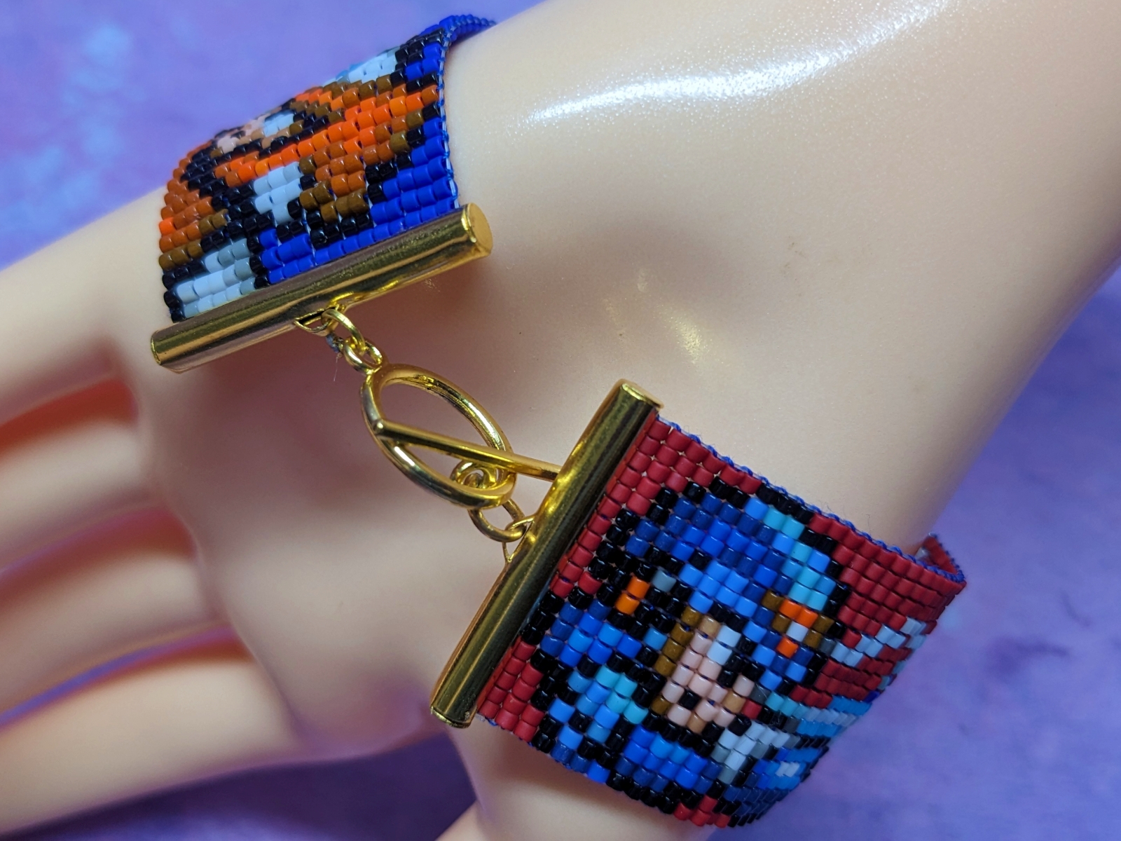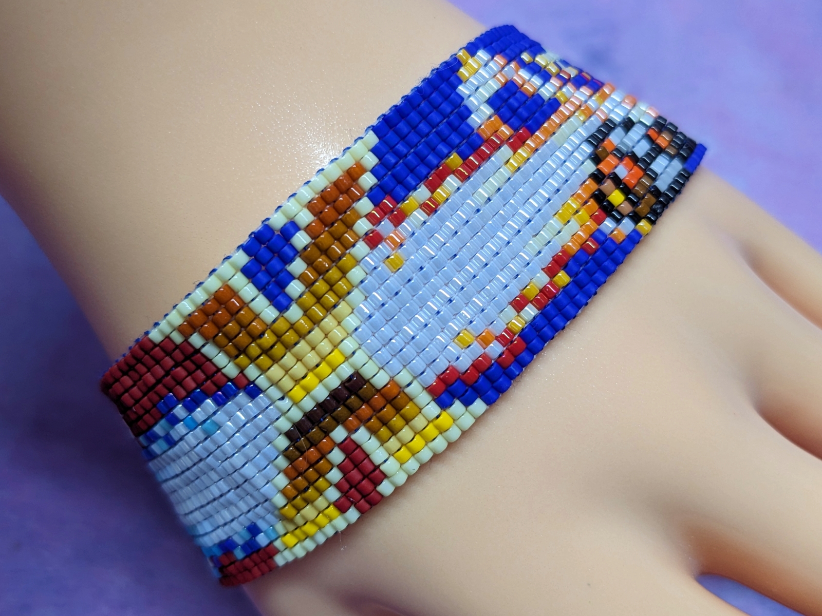 Handmade, one of a kind, no two are exactly alike! Made from Miyuki Delica seed beads, sewing thread(and nylon beading thread). Made using a bead loom, each bracelet takes anywhere from 2.5 to 4 hours to create.